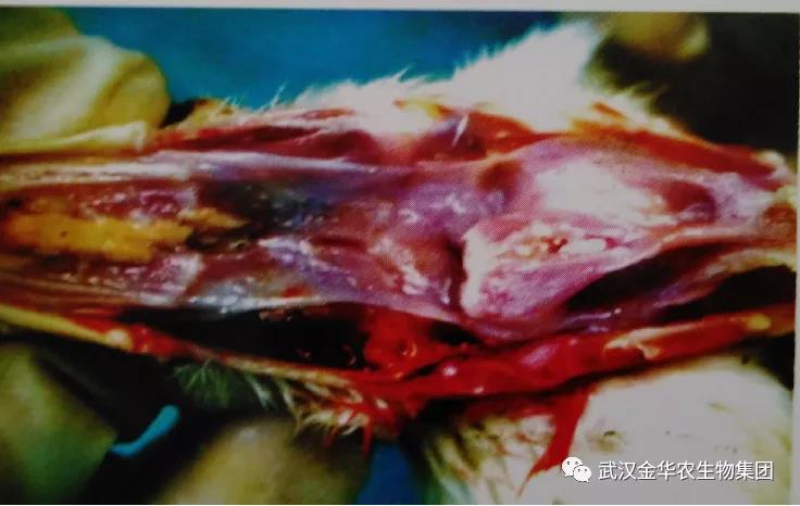 這些粘膜上的潰瘡很難除去,所以粘膜上常遺留出血裂口。潰瘡?fù)砷L而形成乾酪狀偽膜。肺部偶爾充血而氣囊呈混濁狀。