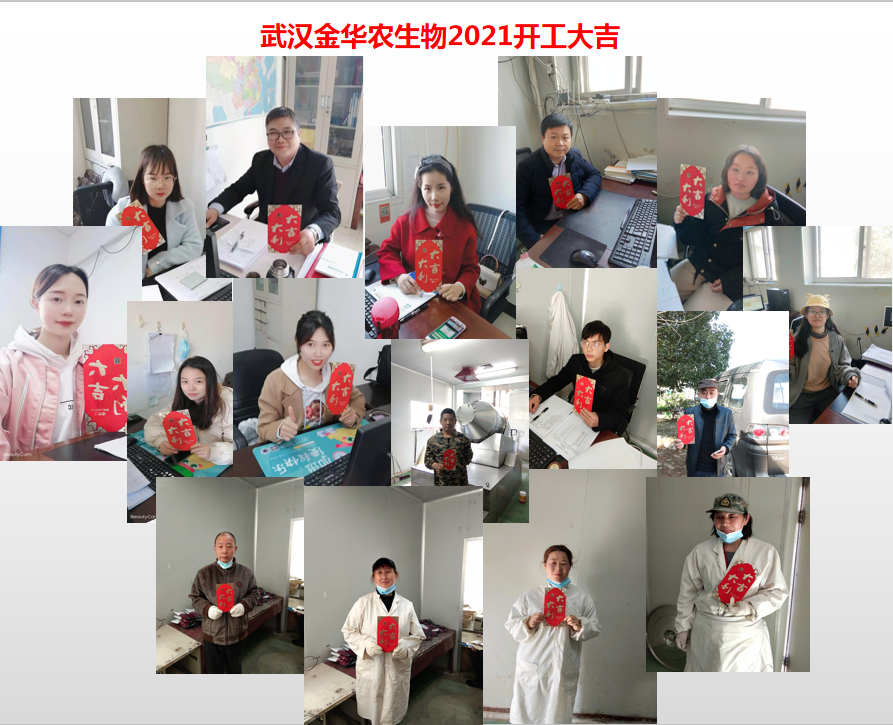 ? ? 武漢金華農(nóng)生物集團于老歷正月初八(2021年2月19日)正式上班運營,開工營業(yè),全體員工均有序投入工作,精神狀態(tài)飽滿,斗志昂揚,渾身充滿斗志,每個人信心十足,繼續(xù)為武漢金華農(nóng)動保事業(yè)努力奮斗,繼續(xù)為養(yǎng)殖事業(yè)提供專業(yè)、高效、盡責(zé)的服務(wù)!