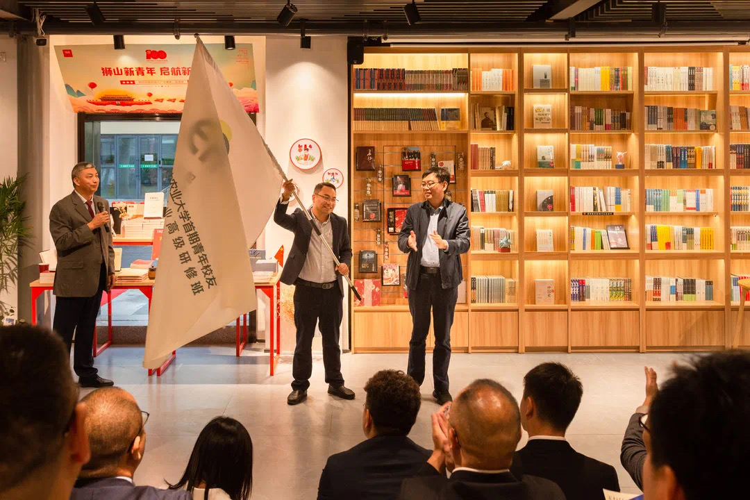 (華中農(nóng)業(yè)大學(xué)黨委常委、副校長郭剛奇為研修班授班旗)