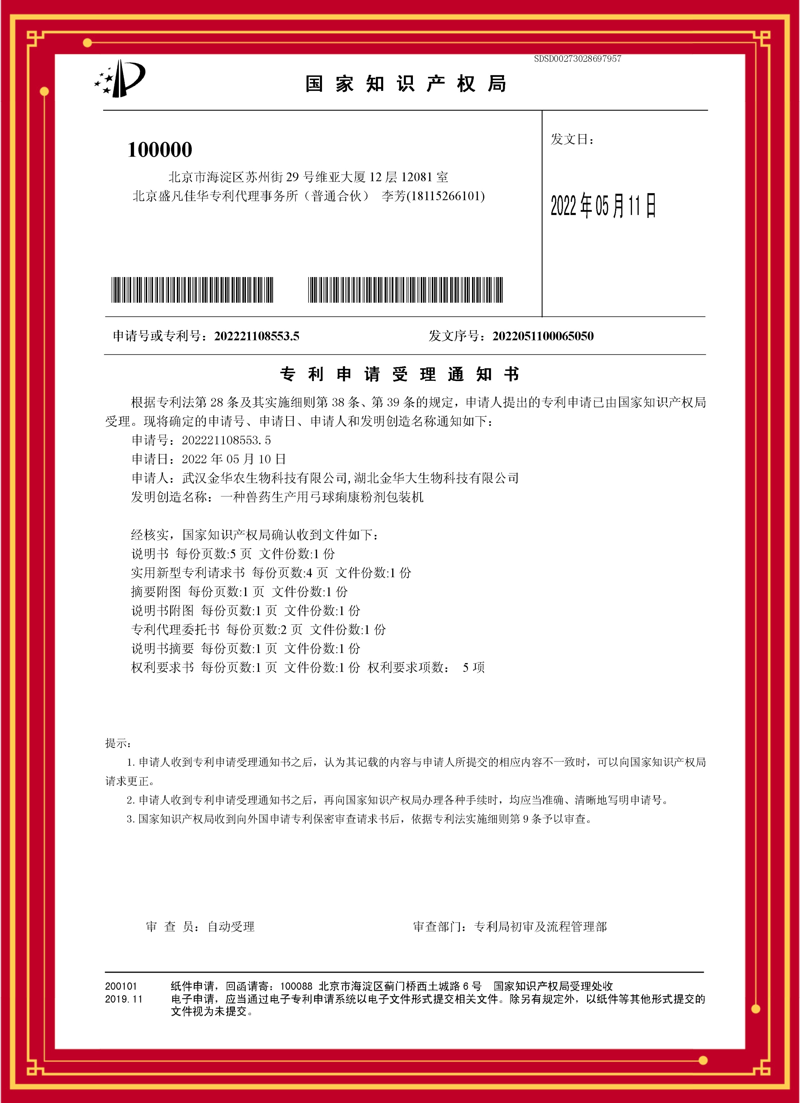 科技發(fā)明專利(金普西林):專利號(hào)—202221407935.8