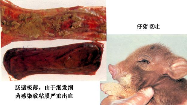 當(dāng)泌乳母豬發(fā)病后泌乳量會(huì)大大下降,致使哺乳仔豬得不到充足的乳汁,仔豬營養(yǎng)會(huì)嚴(yán)重失調(diào),仔豬的病情也會(huì)愈發(fā)嚴(yán)重。在臨床中,某些仔豬發(fā)病前先呈現(xiàn)體溫升高,隨后發(fā)生腹瀉,體溫又下降的情況。隨著日齡增長,仔豬病的死率逐漸降低。