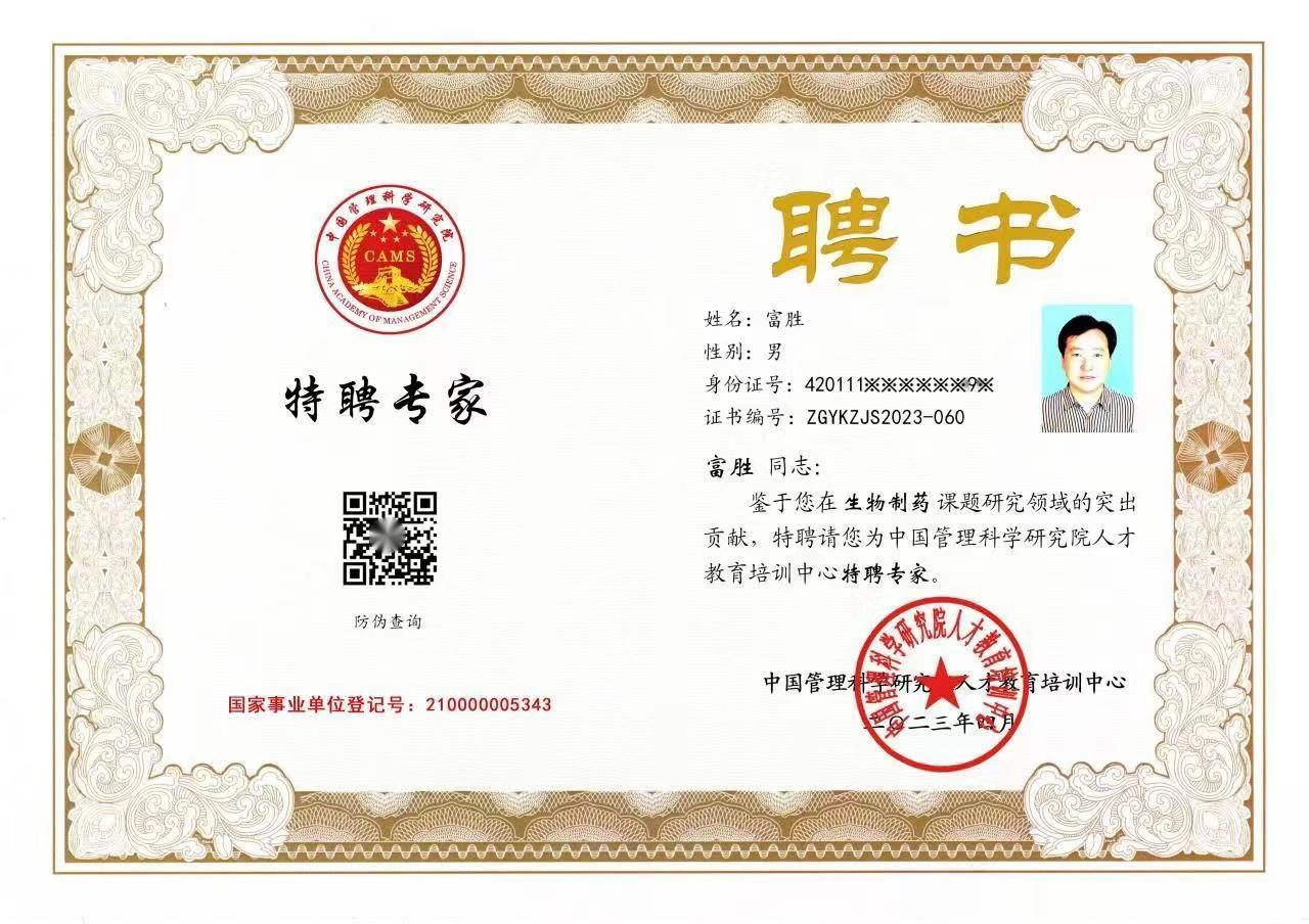 中國(guó)科學(xué)研究院“生物制藥”榮譽(yù)證書