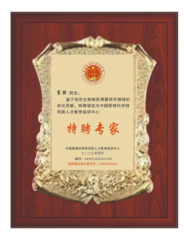 中國科學(xué)研究院“生物制藥”榮譽(yù)證書