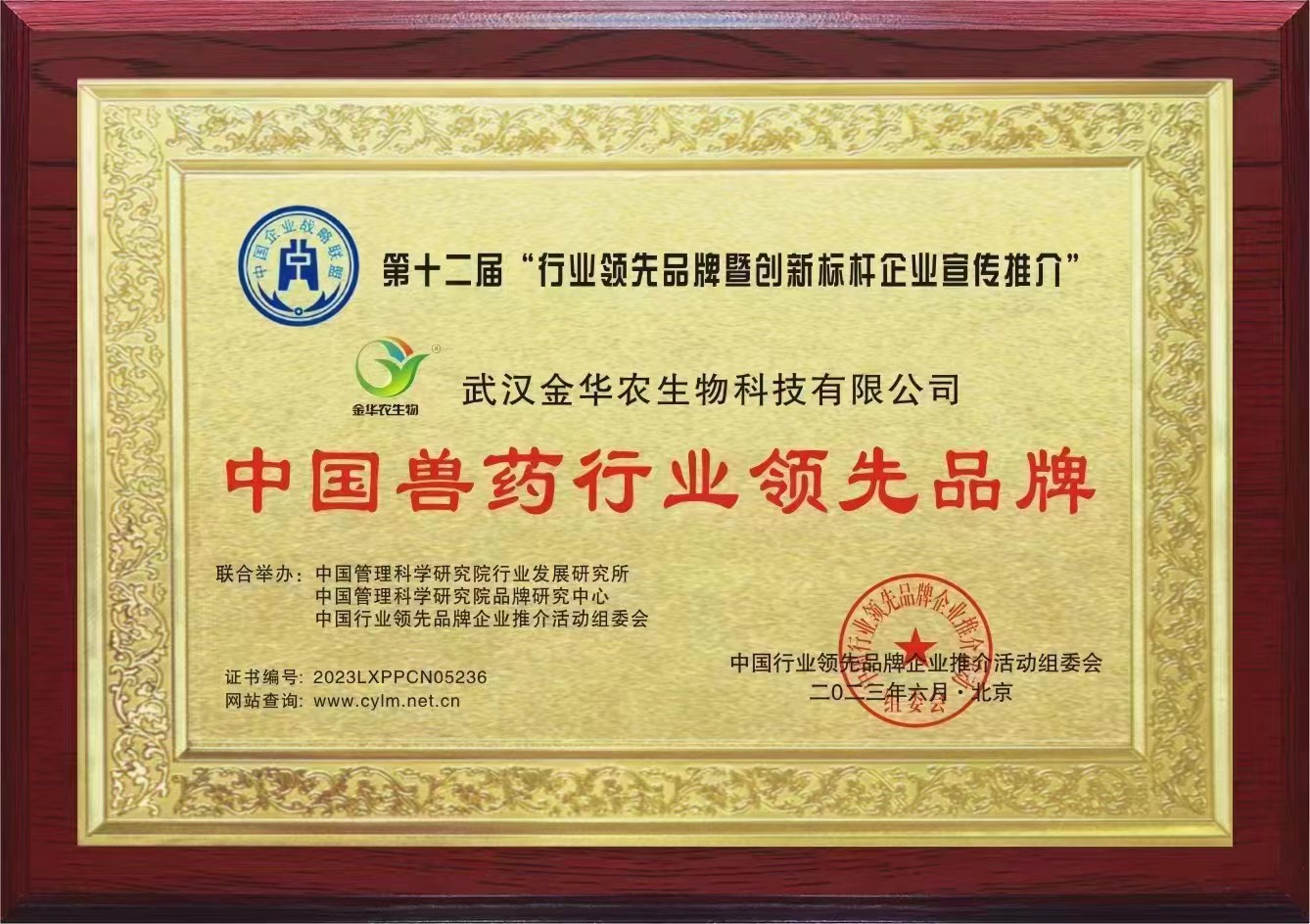 卯兔年未過半,武漢金華農(nóng)已迎來諸多利好消息。公司業(yè)績(jī)突飛猛進(jìn),銷量翻番;公司獲得省農(nóng)業(yè)農(nóng)村廳第一批新版GMP獸藥文號(hào)、飼料添加劑45個(gè)新品種批號(hào);公司憑借專業(yè)技術(shù)、創(chuàng)新發(fā)展、高效服務(wù),被國(guó)家信用平臺(tái)、品牌強(qiáng)國(guó)計(jì)劃評(píng)選為“獸藥飼料添加劑行業(yè)典范企業(yè)”。近日,公司又在中國(guó)科學(xué)研究院組織的全國(guó)自主品牌研發(fā)、科研創(chuàng)新產(chǎn)品、質(zhì)量品控管理、高校產(chǎn)學(xué)研基地建設(shè)的評(píng)選活動(dòng)中,經(jīng)嚴(yán)格篩選,層層選拔,考核評(píng)比,監(jiān)督審查,被中國(guó)科學(xué)研究院組委會(huì)授予“中國(guó)獸藥行業(yè)領(lǐng)先品牌”榮譽(yù)稱號(hào)。