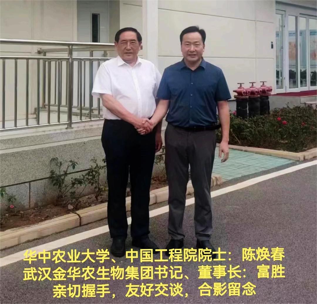 會議結束后,公司領導富勝董事長與陳煥春院士親切握手,友好交談,并留下了珍貴的合影。陳煥春院士對武漢金華農生物近年來取得的迅猛發(fā)展給予了高度贊揚。他充分肯定了公司在動物保健和飼料添加劑領域所取得的卓越成就,并對連續(xù)11年銷售業(yè)績增長的良好態(tài)勢表示由衷的贊嘆。富勝董事長衷心感謝陳煥春院士對公司的支持和肯定,并表示,武漢金華農生物將繼續(xù)秉承專精特新精神,聚焦主業(yè),加大產(chǎn)品技術的研發(fā)投入力度,不斷提高公司創(chuàng)新能力與研發(fā)水平,通過專業(yè)、專注和致力于產(chǎn)業(yè)化精細建設,不斷打造中國動保行業(yè)的杰出品牌,為人類動保行業(yè)的健康發(fā)展做出更大的貢獻!