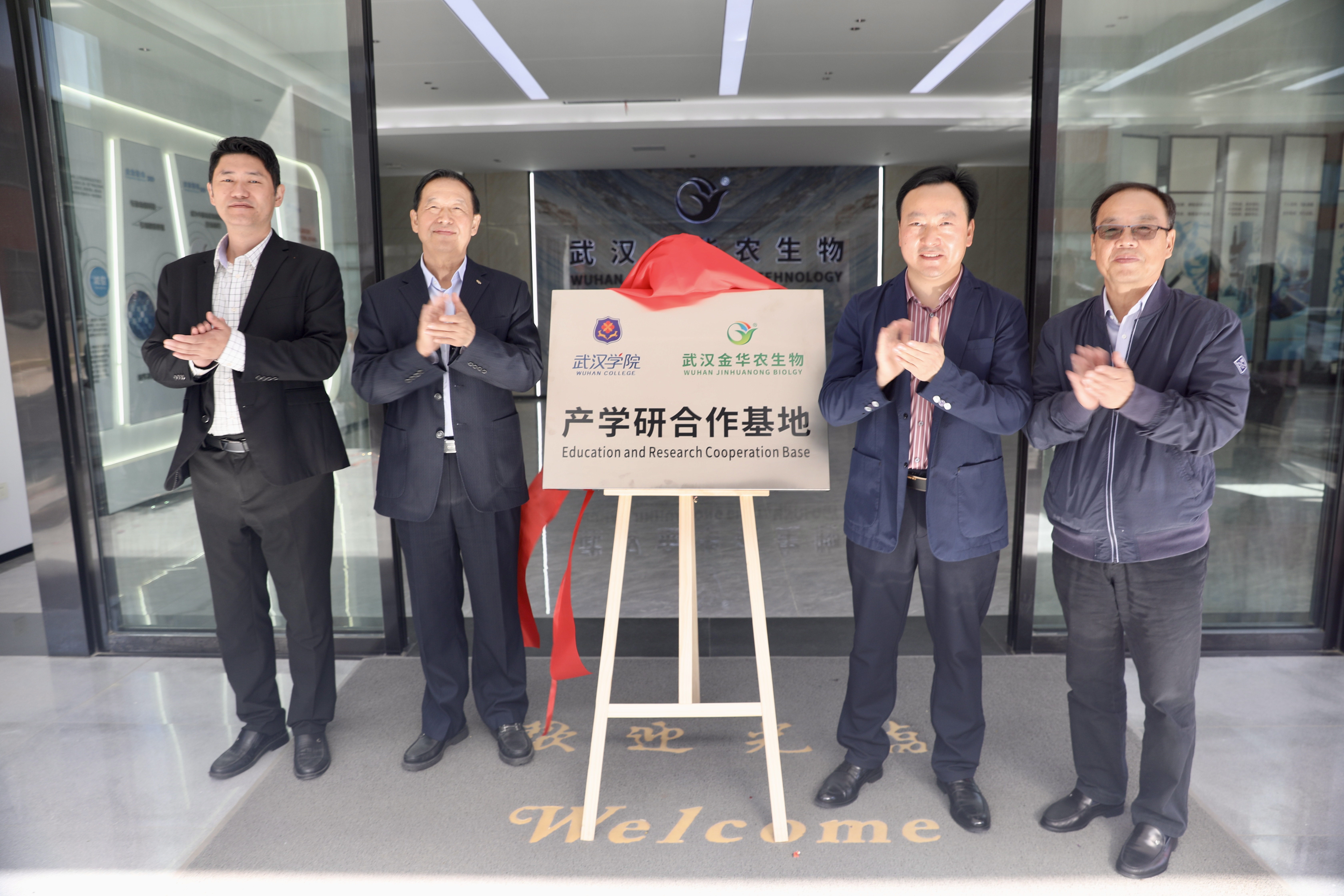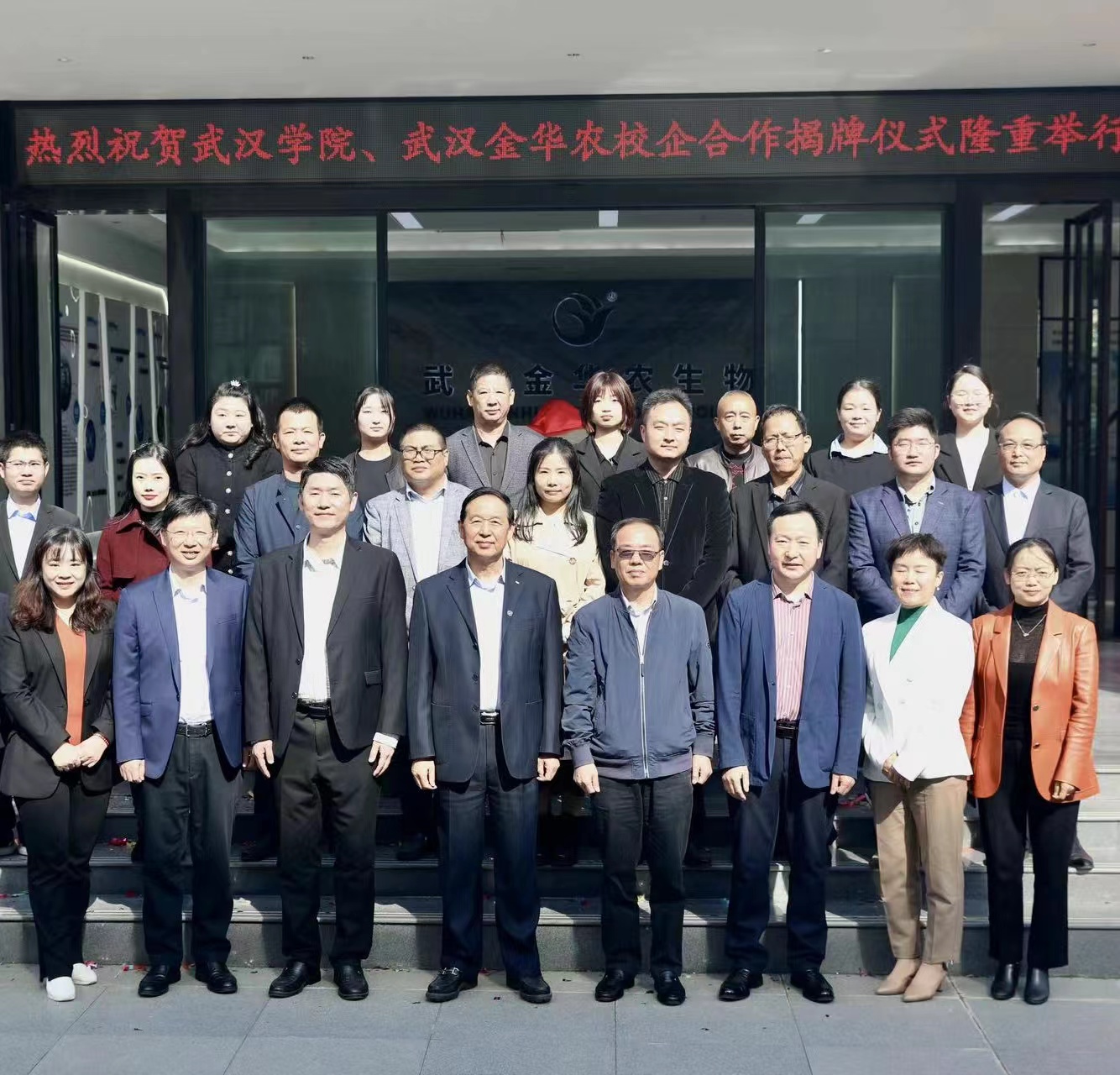 武漢學(xué)院校長李忠云、副校長羅航、管理學(xué)院院長李延暉、教務(wù)處處長韋瑋、金融與經(jīng)濟學(xué)院副院長周利、教務(wù)處副處長謝忠琴、學(xué)生工作處副處長戚蘭,武漢金華農(nóng)生物公司董事長富勝、副總經(jīng)理黃凡、市場總監(jiān)郭昌盛、人事總監(jiān)梅寒、技術(shù)總監(jiān)吳志良、湖北分公司總經(jīng)理劉總、山東分公司總經(jīng)理徐總及公司相關(guān)代表出席簽約儀式。會議特邀原湖北省總工會黨組書記、常務(wù)副主席馬建中參加見證簽約揭牌儀式。
