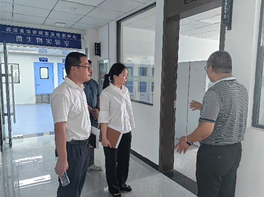 ? ? ? ?政府金融機構劉處長、宋主任,高行長一行,前往我司項目基地考察,參觀了解微生物實驗室、國家GMP車間、質(zhì)量檢測中心、研發(fā)試驗中心建設情況,十分稱贊,并祝賀武漢金華農(nóng)企業(yè)快速發(fā)展壯大。公司運營主管郭昌盛向領導一行介紹了公司在企業(yè)文化、技術體系、市場拓展、品牌建設等方面取得的成績。