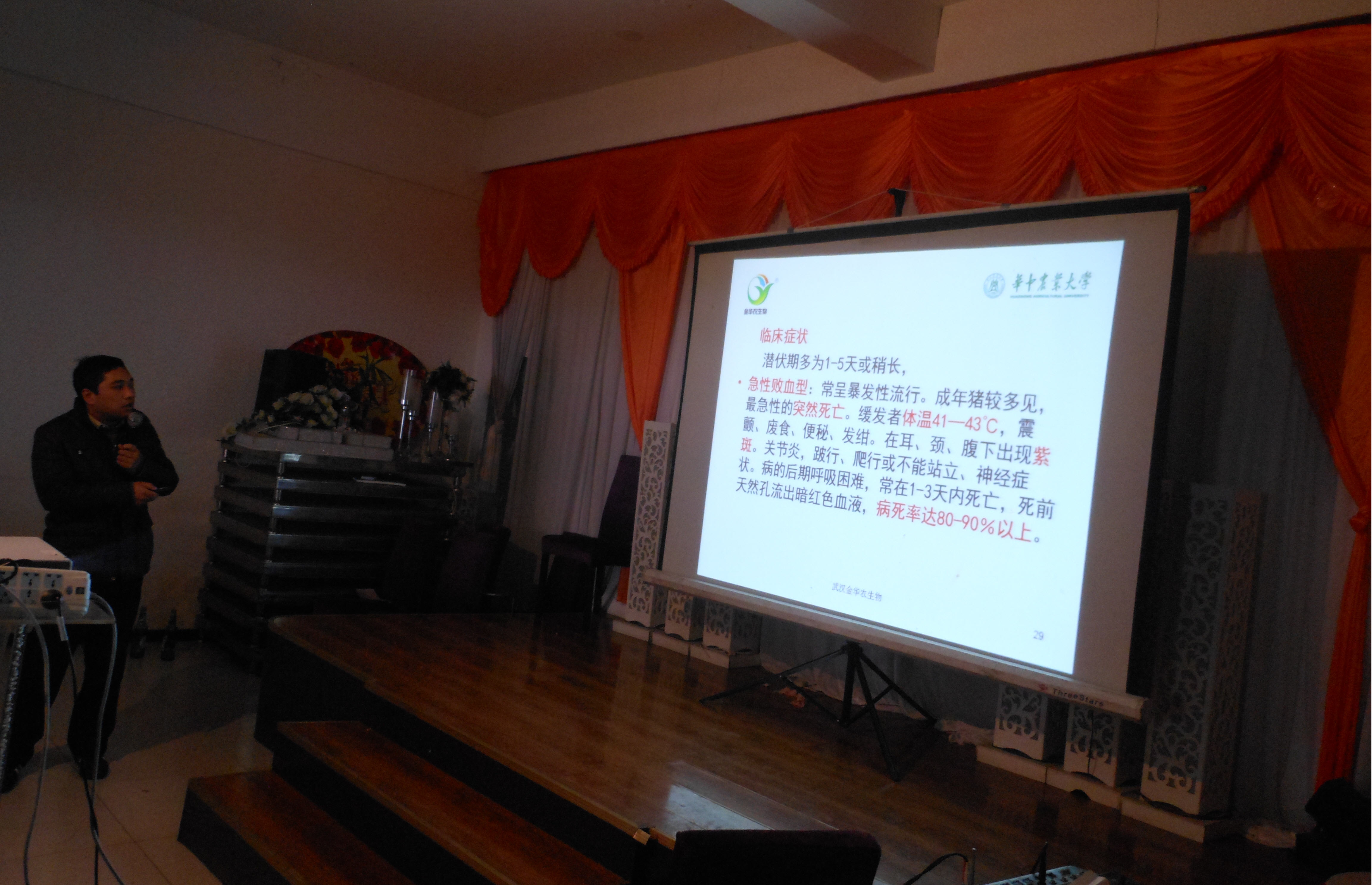 此次會(huì)議主要涉及到豬口蹄疫、喘氣病、傳染性胸膜肺炎、豬傳染性胃腸炎、仔豬黃痢疾、白痢疾等冬季易發(fā)病。胡老師針對(duì)每種疾病的癥狀進(jìn)行詳細(xì)講解,并用淺顯易懂的語言回答現(xiàn)場養(yǎng)殖戶的疑問,有效的互動(dòng)讓整個(gè)會(huì)議氣氛熱烈而輕松。