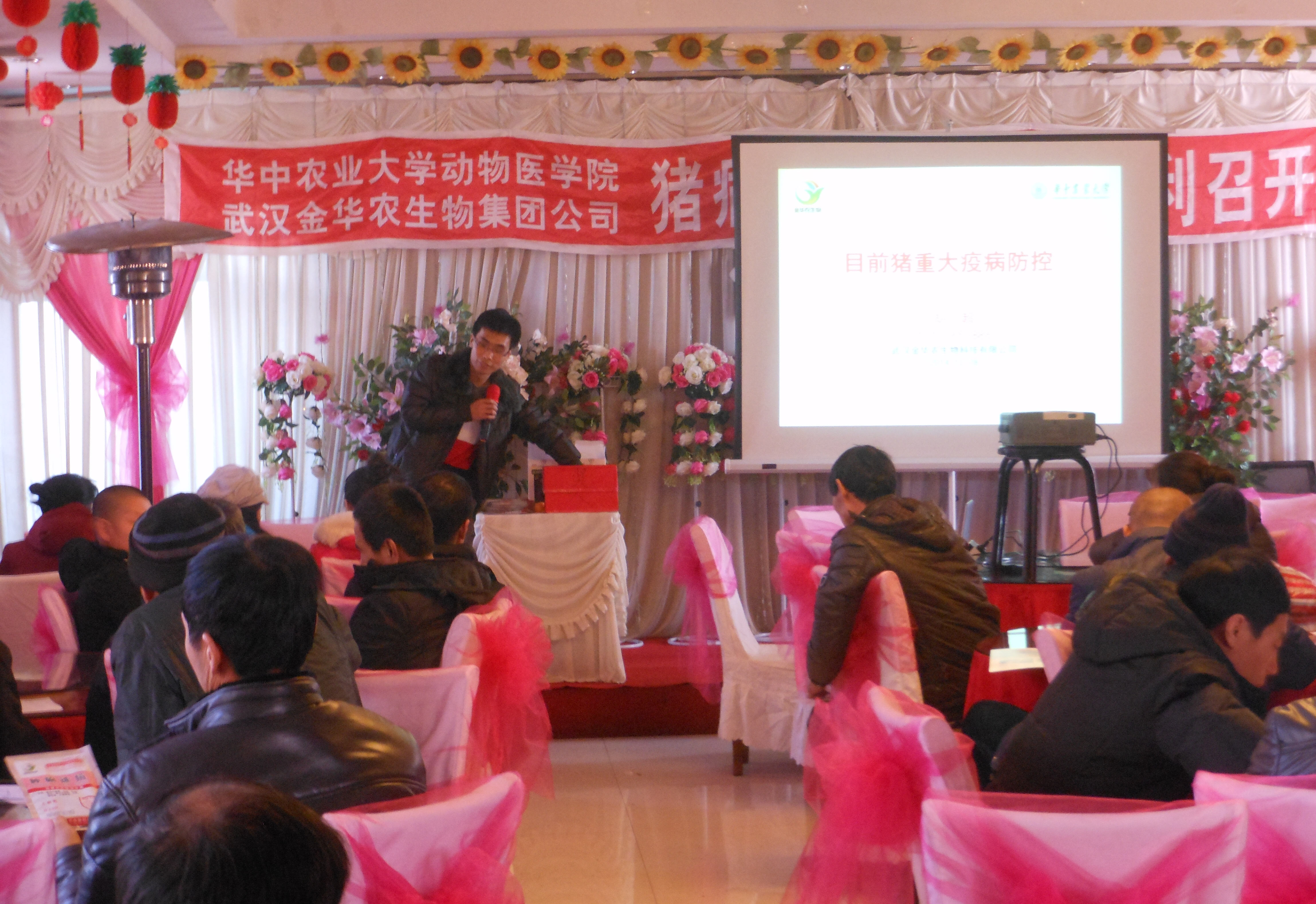 12月28日,應(yīng)吉林省畜牧獸醫(yī)局的隆重邀請(qǐng),武漢金華農(nóng)生物“科技下鄉(xiāng)”活動(dòng)按計(jì)劃來(lái)到吉林省榆樹(shù)市,為100多家規(guī)?;B(yǎng)殖戶帶來(lái)了一場(chǎng)精彩的豬病預(yù)防和治療的技術(shù)研討課。