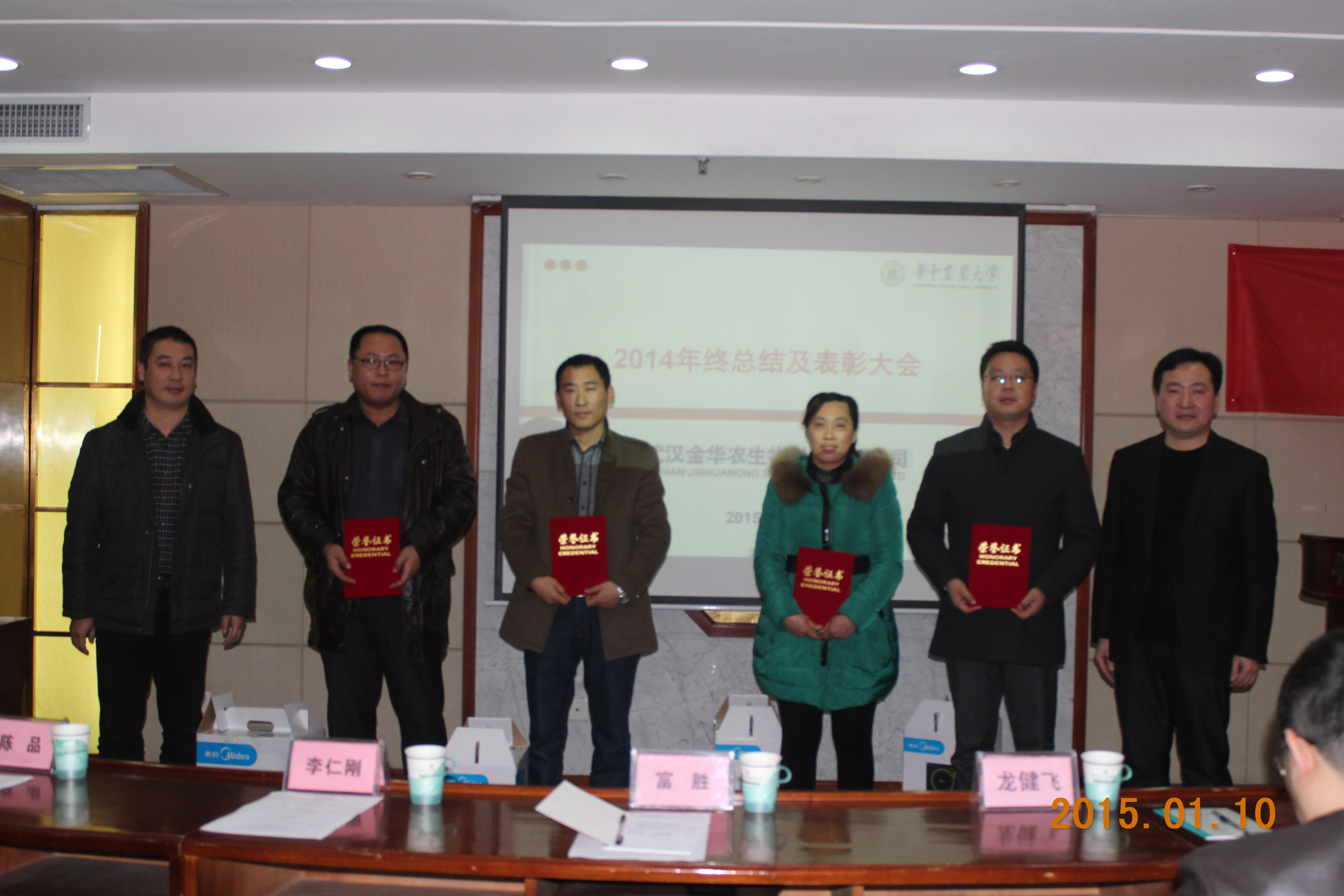 華中農(nóng)業(yè)大學(xué)附校黨委書記(原華中農(nóng)業(yè)大學(xué)科技成果轉(zhuǎn)換負(fù)責(zé)人)李仁剛書記、華中農(nóng)業(yè)大學(xué)人事處龍健飛處長、華中農(nóng)業(yè)大學(xué)動物醫(yī)學(xué)院獸藥研發(fā)專家陳品教授、湖北電視臺張堯記者出席了此次會議,并向公司致賀,祝賀金華農(nóng)公司2014年所取得的輝煌業(yè)績、可喜的進步和大步伐的發(fā)展,期待2015年再創(chuàng)輝煌。