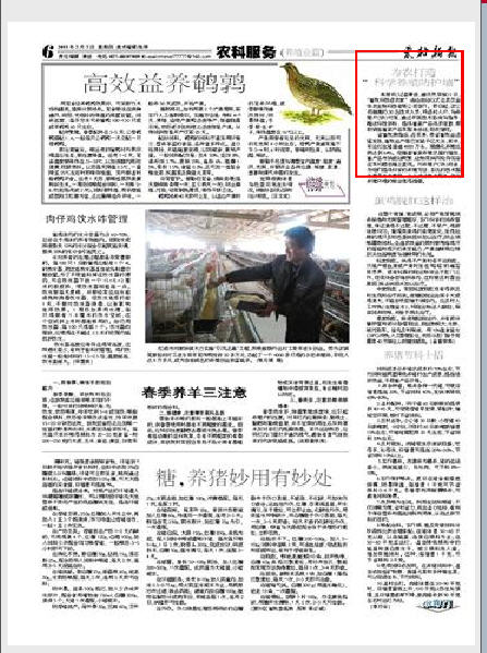 ??? 科學養(yǎng)殖致富,減少疫病發(fā)生,是廣大養(yǎng)殖戶最為關切的問題。為將農業(yè)部、省畜牧局提出的“畜牧科技進農家、結對幫扶”活動落到實處,金華農生物公司今年將抽調30名技術人員,進村入戶,與養(yǎng)殖戶(養(yǎng)殖場)對接,通過開展技術咨詢與指導、贈送科技資料、提供畜禽產品供求信息、幫助銷售畜禽產品、開通畜牧疾病咨詢熱線等服務活動,助農增收。