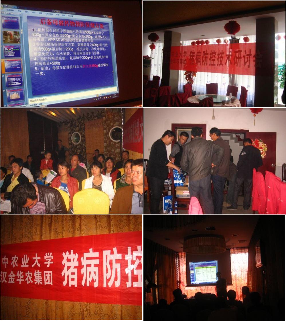 會(huì)議現(xiàn)場(chǎng),來(lái)自湘南地區(qū)的60多家養(yǎng)殖場(chǎng)負(fù)責(zé)人及各地經(jīng)銷(xiāo)商、技術(shù)員代表共200多人,就養(yǎng)殖所關(guān)心的疾病防控、標(biāo)準(zhǔn)化豬場(chǎng)建設(shè)、組合用藥配比等問(wèn)題,與華中農(nóng)業(yè)大學(xué)豬病專(zhuān)家進(jìn)行了面對(duì)面交流,武漢金華農(nóng)生物推出的“氟泰肺寧”特效組合用藥指導(dǎo)也得到養(yǎng)殖戶和各地經(jīng)銷(xiāo)商的一致認(rèn)可。