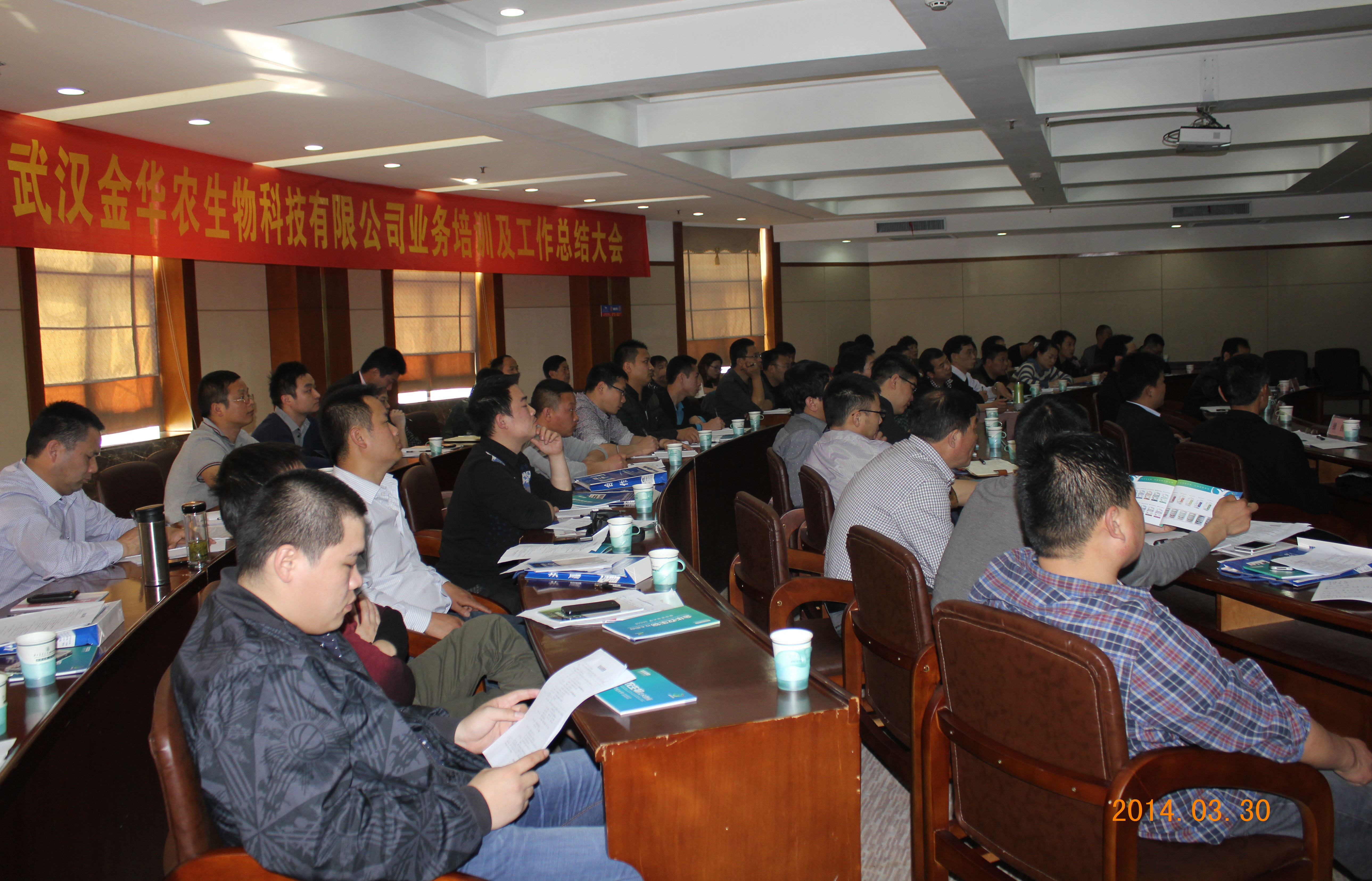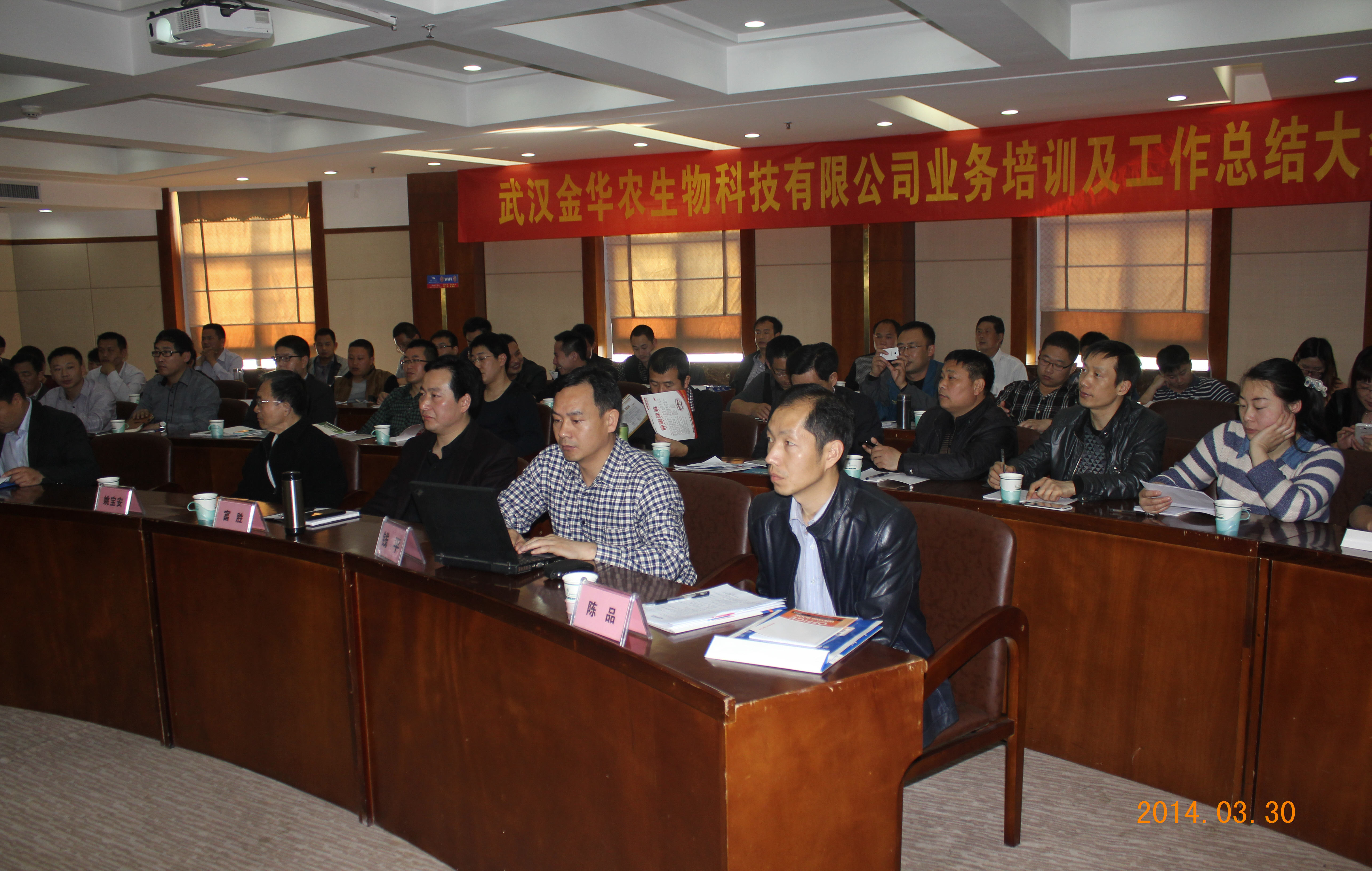 3月29日至31日,武漢金華農生物2014年第一季度培訓學習及工作總結會議在華中農業(yè)大學國際學術交流中心召開,來自全國16個省市的員工代表參會,華中農業(yè)大學相關領導、動物醫(yī)學院相關專家和教授、及公司領導出席了此次會議。
