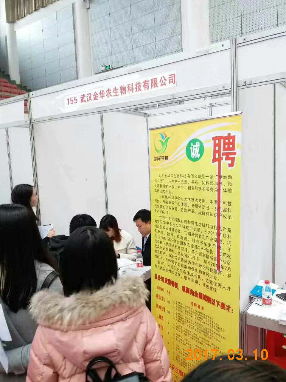 3月10日,武漢金華農(nóng)生物應邀參加華中農(nóng)業(yè)大學春季畢業(yè)生供需見面會。隨著公司規(guī)模進一步擴大,發(fā)展步伐進一步加快,原有規(guī)模不能滿足公司發(fā)展,增設部門和擴充人手勢在必行。武漢金華農(nóng)提供的多個崗位受到華農(nóng)學子的熱烈追捧,爭先恐后前來咨詢和面試,競聘各種崗位。經(jīng)過現(xiàn)場面試和篩選,公司在本次招聘會上收獲人才頗豐!