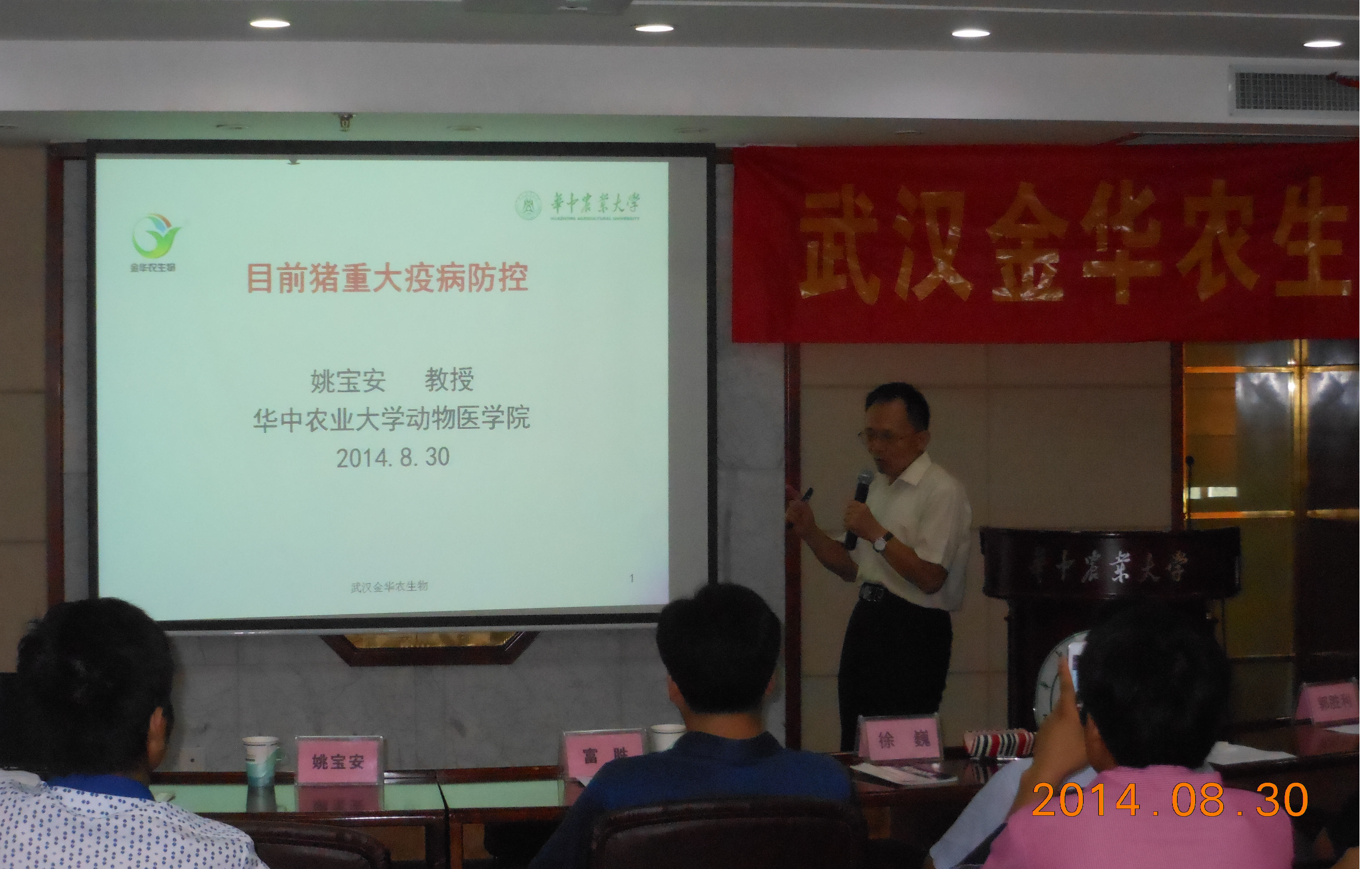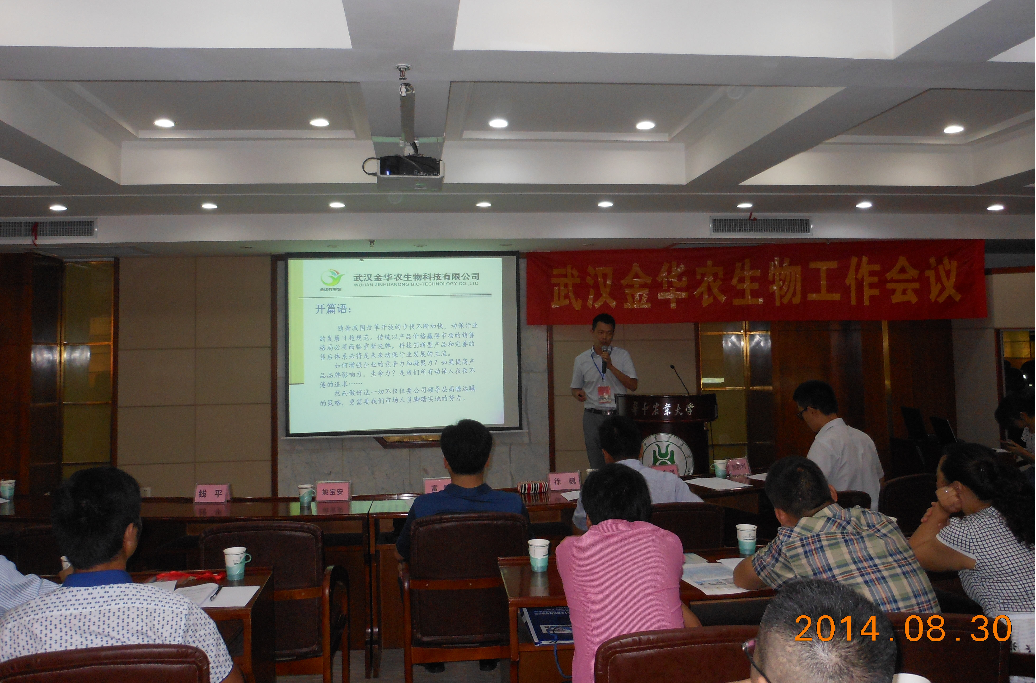 8月29日-31日,武漢金華農(nóng)生物第三季度市場(chǎng)銷售工作及豬病培訓(xùn)會(huì)議在華中農(nóng)業(yè)大學(xué)勝利召開,主題內(nèi)容涉及季度銷售工作總結(jié)、各大區(qū)業(yè)績(jī)匯報(bào)、新產(chǎn)品研發(fā)定位、豬常見病和易發(fā)病的防控與治療。