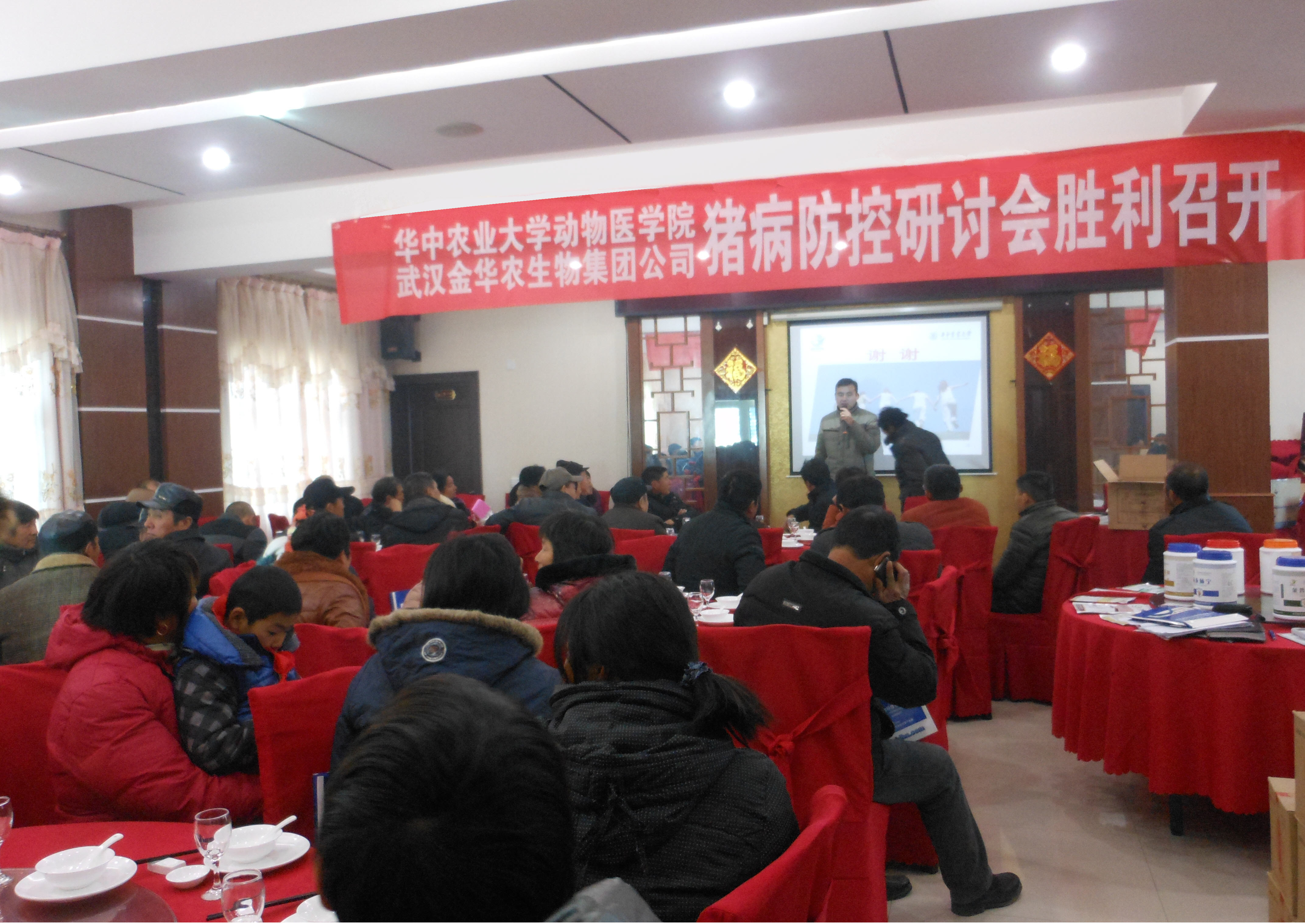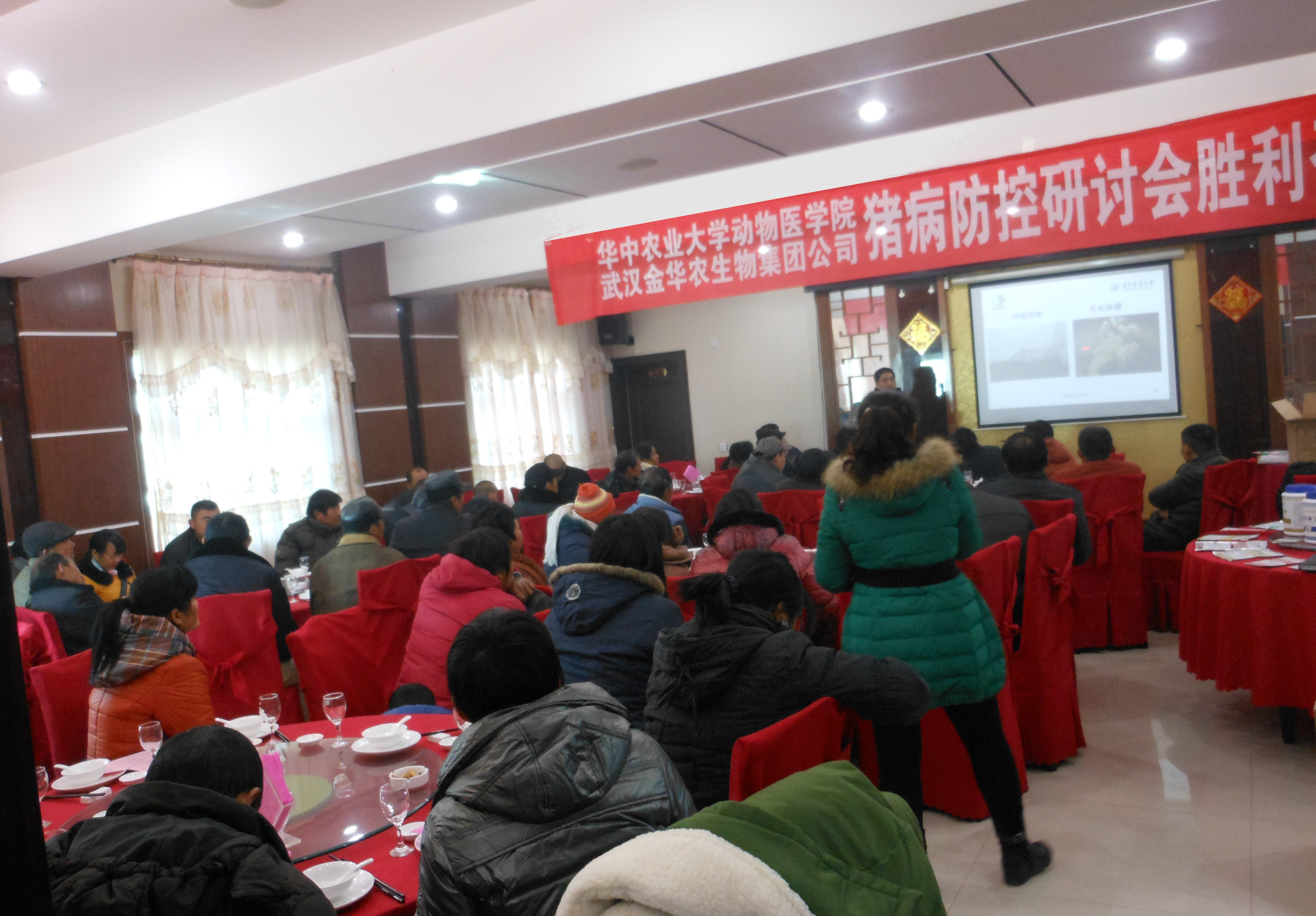 12月16日,金華農公司的科技下鄉(xiāng)活動在江蘇鹽城、南通等地市拉開序幕。冬天天氣寒冷,疾病的高發(fā)期也來臨,為有效提高廣大養(yǎng)殖戶的豬病知識與養(yǎng)殖技術,金華農公司受到江蘇省畜牧獸醫(yī)局邀請,聯(lián)合華中農業(yè)大學臨床獸醫(yī)專家,特別策劃了科技下鄉(xiāng)活動,深入一線進行豬病專題講座,面對面溝通,為他們及時排憂解難。本次活動在當?shù)胤错憦娏?,取得圓滿成功!