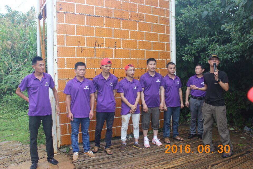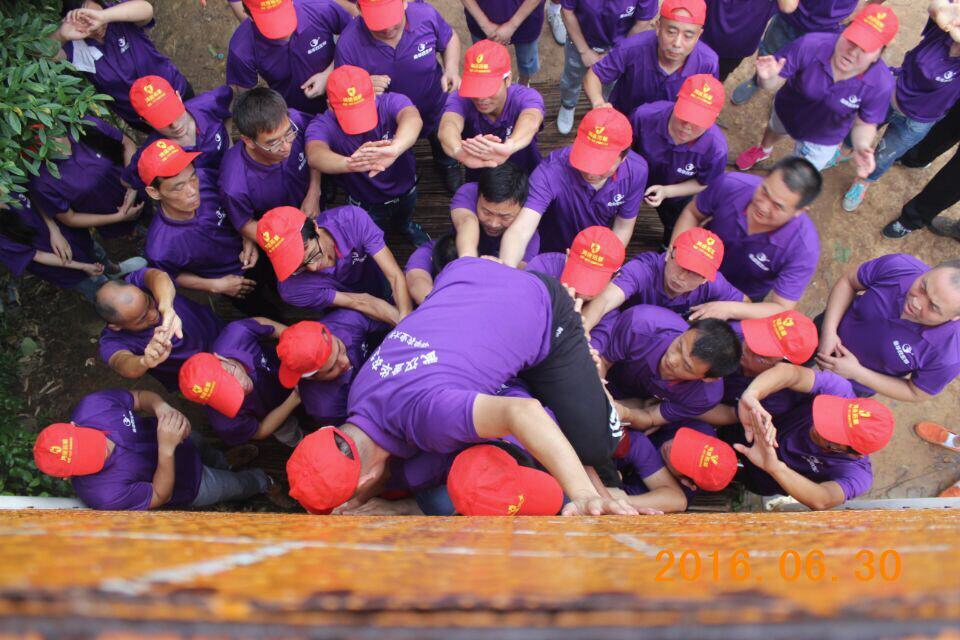 “金華農(nóng),加油!金華農(nóng),加油!金華農(nóng),必勝!金華農(nóng),必勝!……”踏著李奔、陳維利、劉傳忠、曹玉廣、唐友琦、王海峰、陳進(jìn)調(diào)組成的第一層、第二層“人梯”,我們的團(tuán)隊開始往上爬,風(fēng)雨交加,墻面很滑,踩過兩道“人梯”,公司綜合辦主任黃凡第一個躍過墻面,回過頭來,他開始構(gòu)建“頂層”防線,一個、兩個、三個……越來越多的人在隊友的幫助下,成功翻越,我們的目標(biāo),是不落一人。