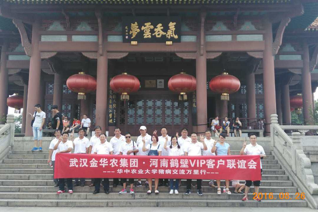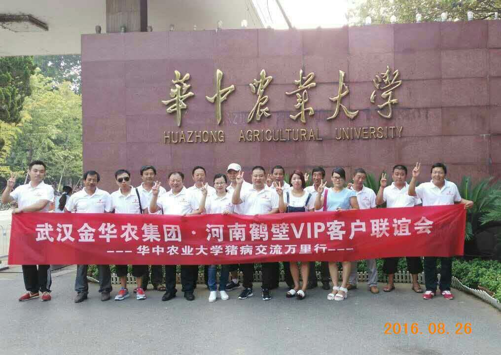 喜訊•捷報(bào):武漢金華農(nóng)生物集團(tuán)公司“豬病萬里行”活動(dòng)成功開啟,第一場(chǎng)面向河南鶴壁規(guī)模豬場(chǎng)客戶團(tuán)隊(duì)!武漢金華農(nóng)生物規(guī)?;B(yǎng)豬場(chǎng)VIP客戶聯(lián)誼會(huì)取得圓滿成功!武漢金華農(nóng)集團(tuán)·河南鶴壁規(guī)?;i場(chǎng)VIP客戶聯(lián)誼會(huì),為期3天時(shí)間,于8月26號(hào)圓滿結(jié)束,此次“豬病交流學(xué)習(xí)萬里行”活動(dòng)取得巨大成功,畜牧獸醫(yī)行業(yè)在新形勢(shì)、新經(jīng)濟(jì)條件下,傳統(tǒng)養(yǎng)殖業(yè)模式發(fā)生急劇變化,武漢金華農(nóng)藥業(yè)把握新形勢(shì),獨(dú)特創(chuàng)造新型學(xué)習(xí)交流模式,整體效果十分顯著突出!