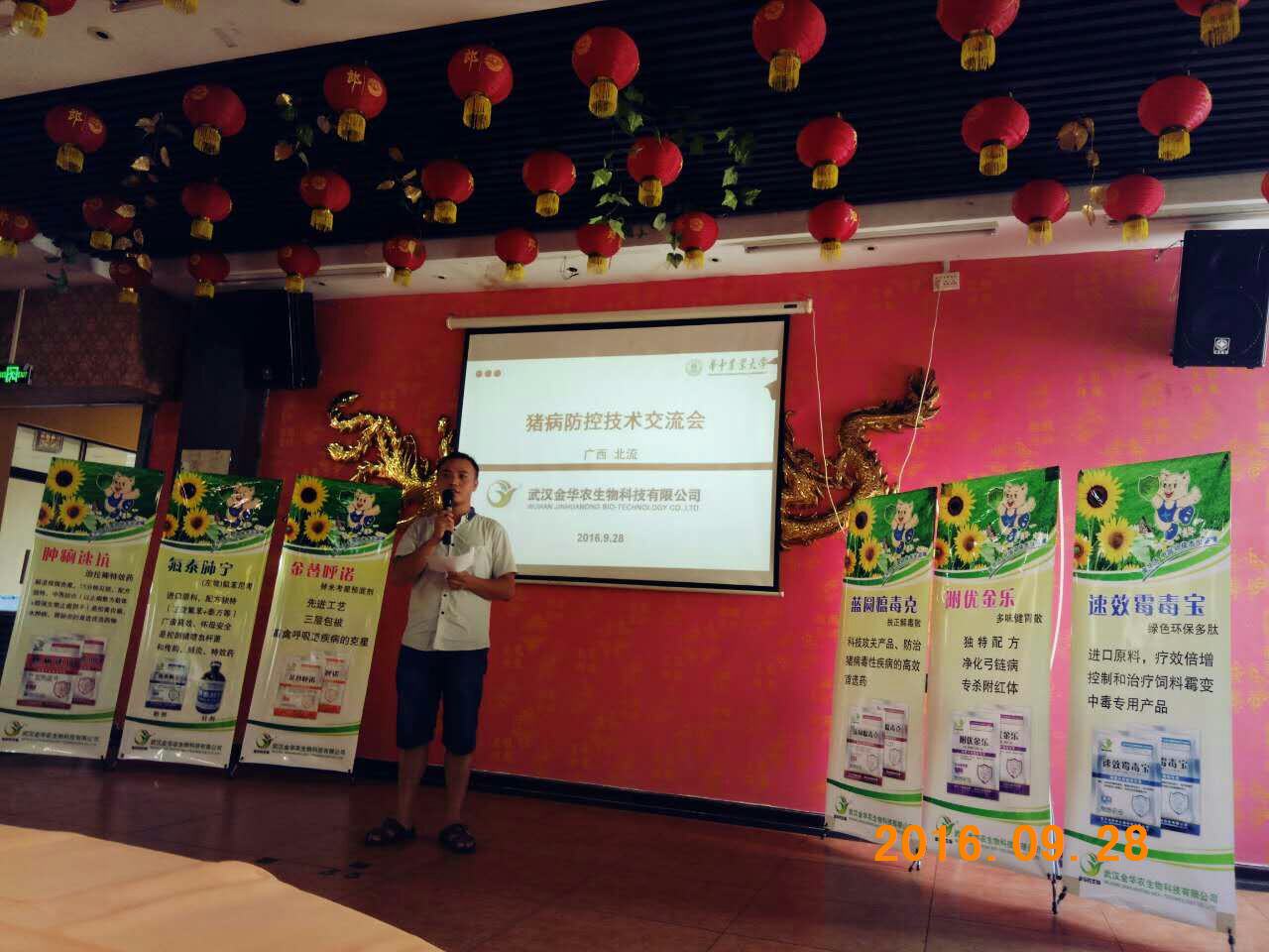9月27-28日,公司廣西市場“秋冬季豬病防控研討會”勝利召開!本次會議由公司領(lǐng)導(dǎo)常務(wù)副總徐巍博士做企業(yè)介紹及公司“一三五”戰(zhàn)略發(fā)展規(guī)劃,公司技術(shù)部唐友琦老師主講,玉林北流地區(qū)負(fù)責(zé)人曹玉廣經(jīng)理策劃與組織。現(xiàn)場客戶40多人參加會議,雖然很多都是新客戶,但是使用武漢金華農(nóng)產(chǎn)品后,都覺得產(chǎn)品質(zhì)量過硬,臨床效果十分顯著,豬病技術(shù)服務(wù)十分優(yōu)秀,會議最后大家激情都很高,贏得一片片喝彩掌聲,會議取得良好的效果,當(dāng)場收現(xiàn)金7萬多元,預(yù)計后期拜訪總銷量達(dá)12萬以上!祝賀優(yōu)秀新人-曹玉廣經(jīng)理首戰(zhàn)告捷!