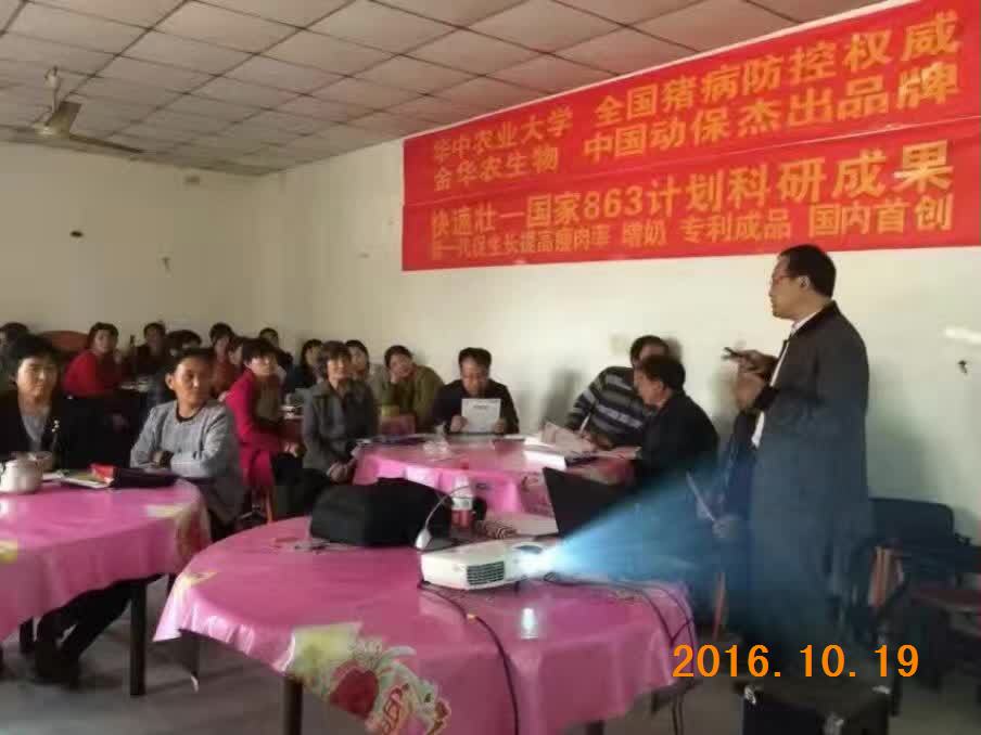 喜訊:10月19日,公司河北晉州市第二場(chǎng)“秋冬季豬病防控研討會(huì)”勝利召開!會(huì)議由公司常務(wù)副總徐巍博士做企業(yè)介紹及公司“一三五”戰(zhàn)略發(fā)展規(guī)劃講解,公司技術(shù)部吳志良老師主講,晉州地區(qū)負(fù)責(zé)人賈建璐經(jīng)理策劃與組織。本次參會(huì)規(guī)?;B(yǎng)殖客戶達(dá)70多人,雖然大部分都是第一次接觸武漢金華農(nóng),但通過(guò)這次會(huì)議交流,大家對(duì)公司的優(yōu)質(zhì)產(chǎn)品、顯著療效和專業(yè)的技術(shù)服務(wù)十分認(rèn)可,會(huì)議當(dāng)場(chǎng)下訂單3萬(wàn)多元,預(yù)計(jì)后期拜訪總銷量達(dá)10萬(wàn)元以上!祝賀晉州地區(qū)賈建璐經(jīng)理再創(chuàng)佳績(jī)! 加油,武漢金華農(nóng)團(tuán)隊(duì)!